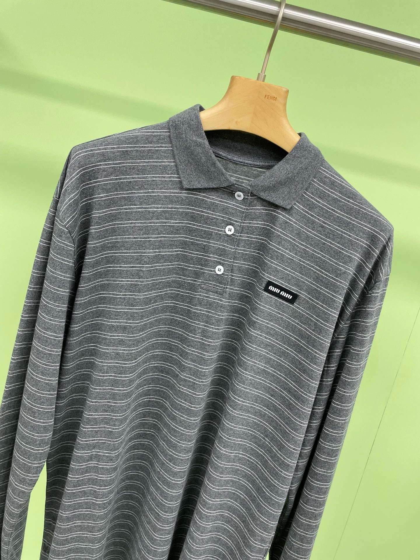 This sophisticated gray striped long-sleeve polo paired with matching shorts is the ultimate effortless-chic outfit—perfect for a relaxed, put-together look that never goes wrong.